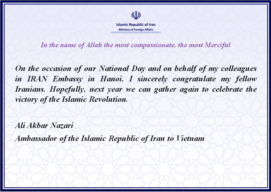 Ambassador's message on the occasaion of the anniversary of the Islamic Revolution