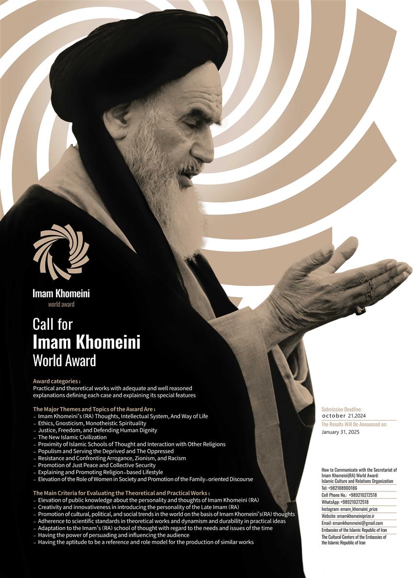 The Islamic Culture and Relations Organization has officially announced the Imam Khomeini World Award. This prestigious award aims to recognize practical and theoretical works that explore and reflect on Imam Khomeini’s thoughts, intellectual system, ethics, and way of life. The award will cover a range of themes, including justice, freedom, monotheistic spirituality, resistance against oppression, and the promotion of peace and security.